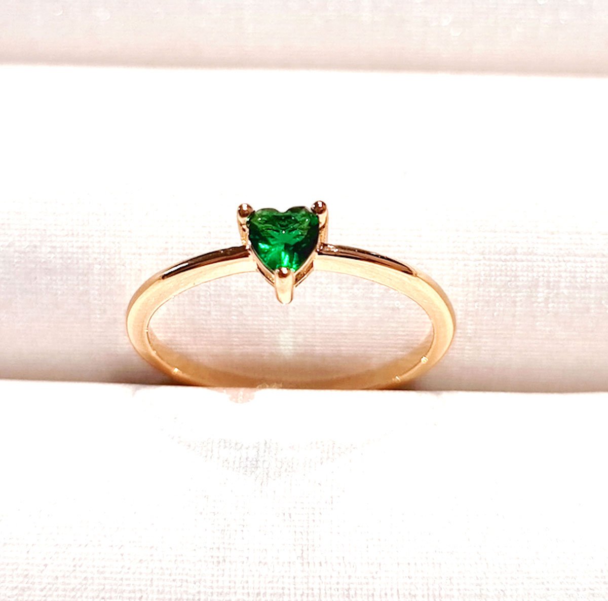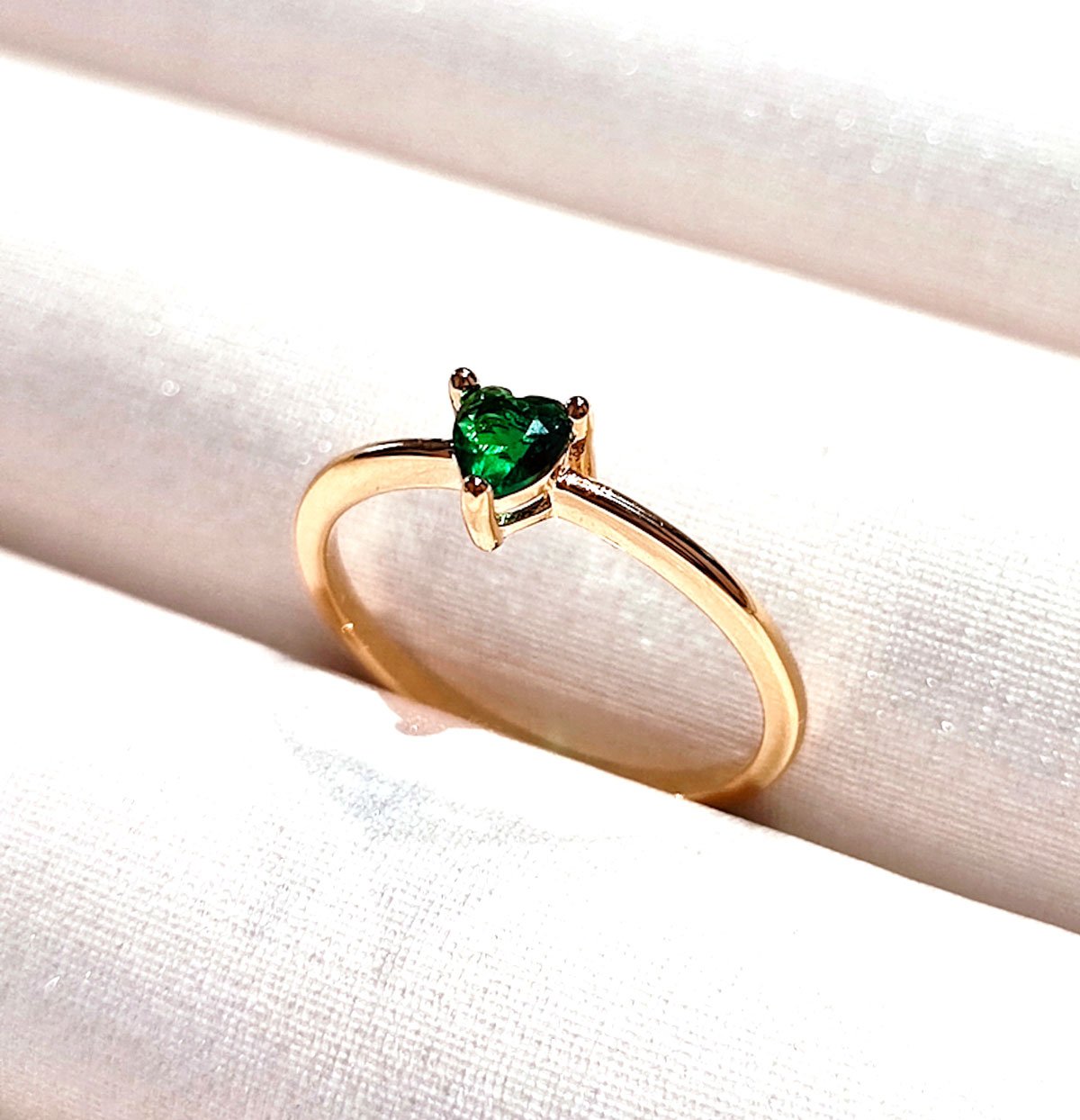 Anel banhado ouro: pedra Zircônias coração verde esmeralda