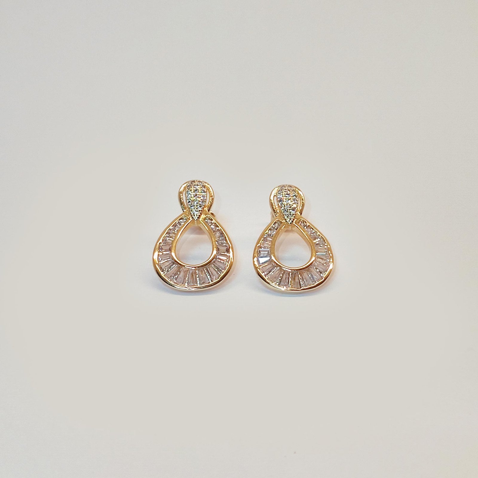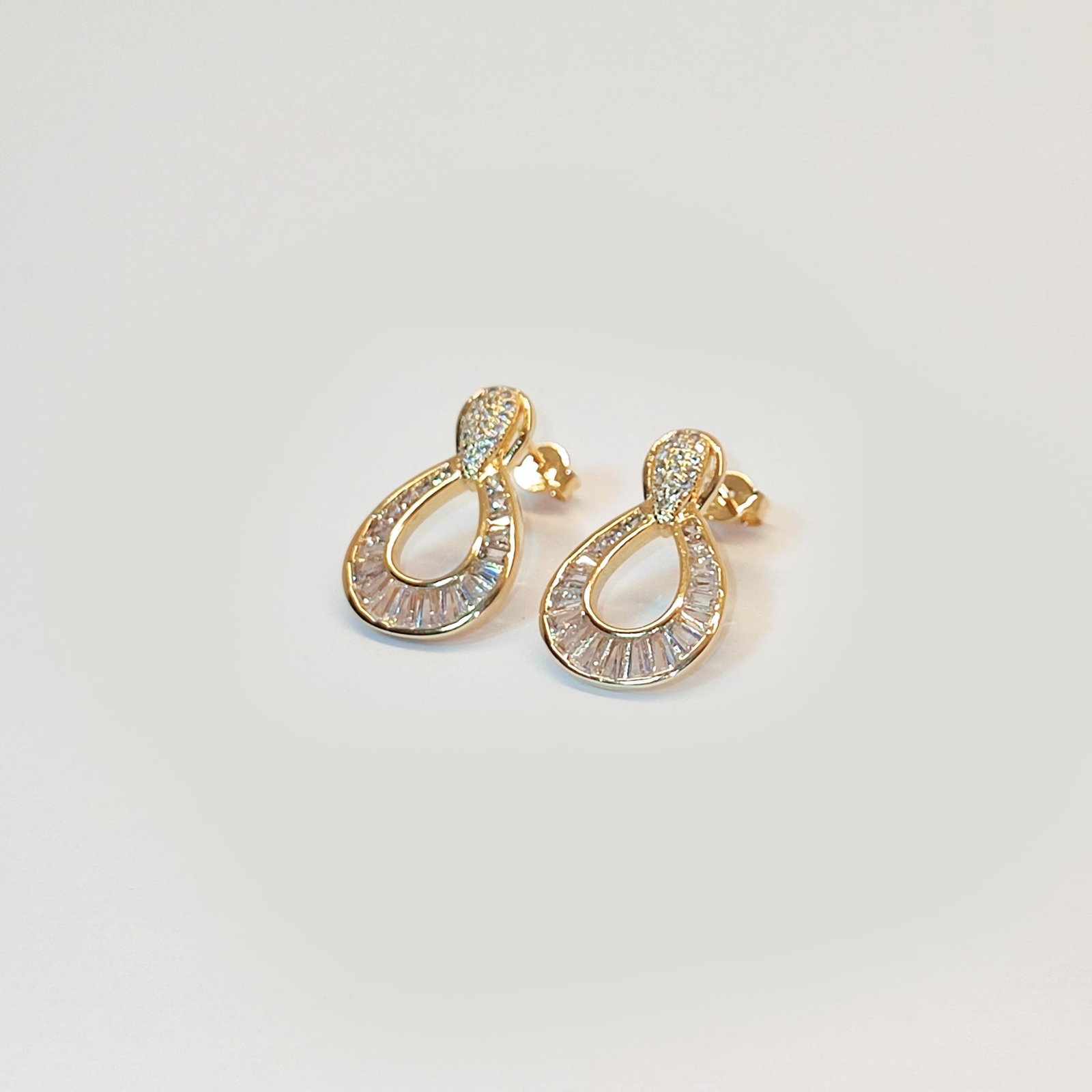 Brinco banhado ouro: pedras Zircônias e baguete zircônias